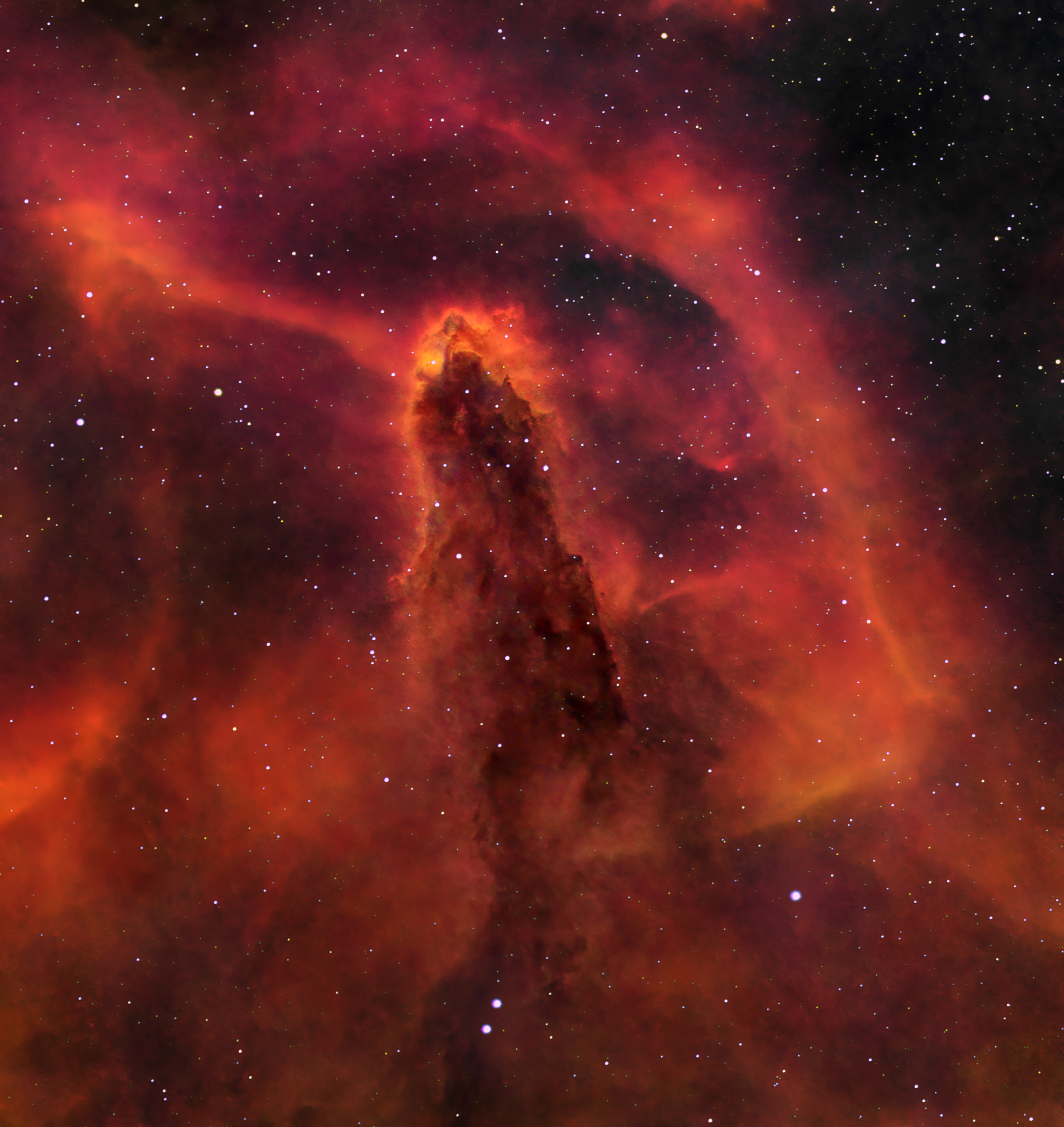 Cometary globule, The Dark Tower, within RCW113 in Scorpius, is shown here in an HSO palette.