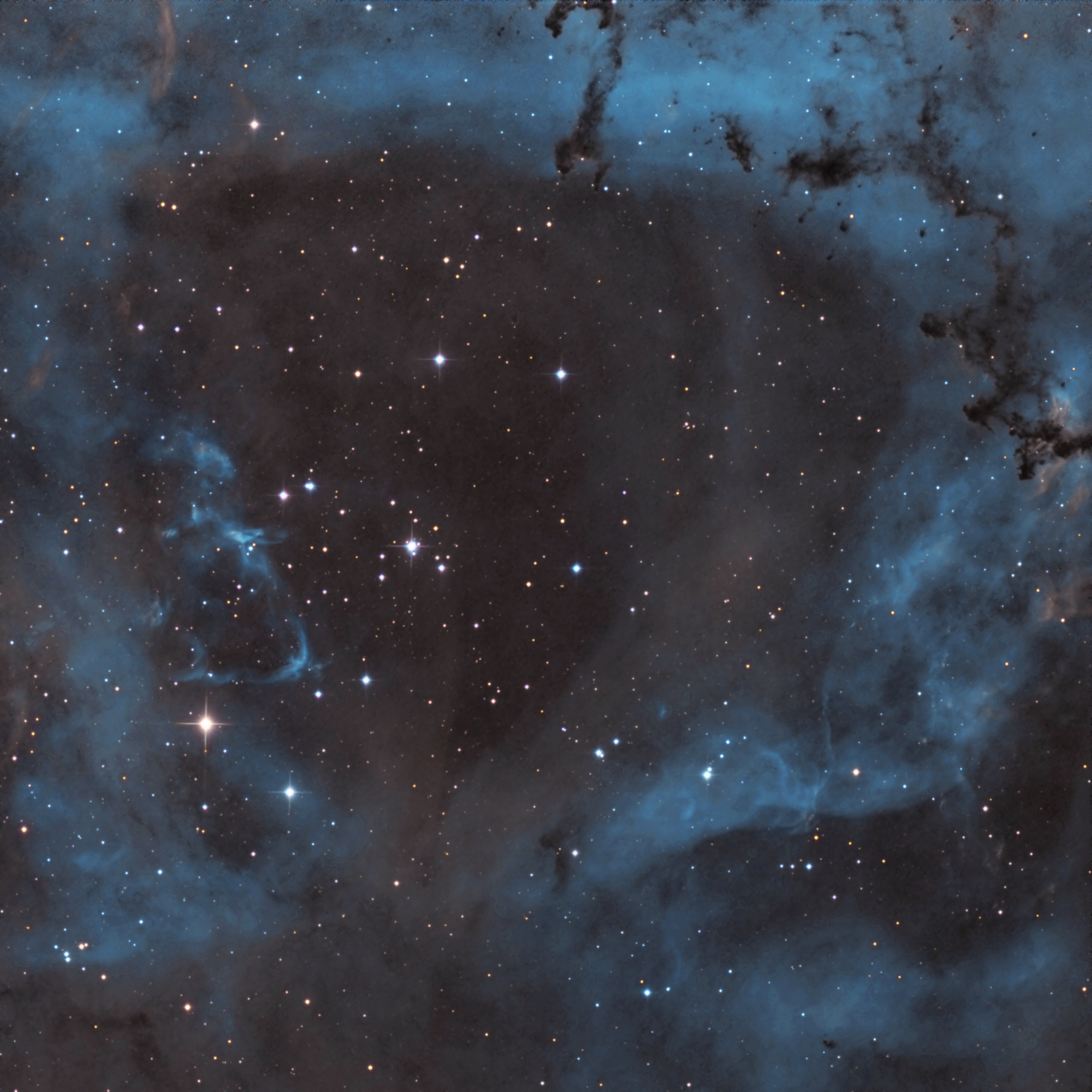Inside the Rosette Nebula lies the open cluster NCG 2244. The stellar winds from these stars produce the "hole" in the center of the nebula. Particularly noticeable, at the right, are the cosmic dust sculptures, most call them globules but I've heard of these particular ones called globulettes. At any rate, this telescope provides beautiful data showing the faint structures within the nebula, which are sometimes overlooked.