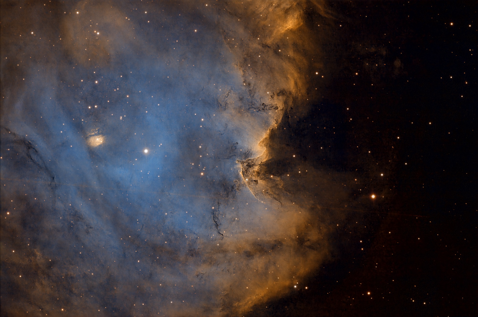 NGC 2174 (Monkey Head Nebula) is an H II emission nebula located in the constellation Orion and is associated with the open star cluster NGC 2175