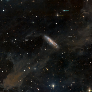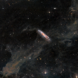 The beauty of this image is the juxtaposition of the galaxy NGC7497 with the dust lanes that appear to pass through it.