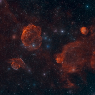 Sh2-224 is a supernova remnant visible in the constellation of Auriga. Friends: Sh2-223, Sh2-225, Sh2-227. Approximately 13 hrs of narrowband (Sii, Ha, Oiii) data from remote Telescope Live observatory in Almeria, Spain. Dark image, best seen on a laptop, iPad, or tablet screen. Full details on Astrobin: